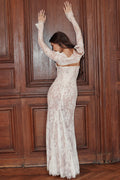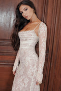 Beautifully made from exquisite, delicate lace and underpinned with our figure cinching cafe au lait power mesh, it features a corseted bodice that's gorgeously gathered with lace up detailing to the back.