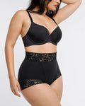 • Mid-rise design with upgraded 3.15 inches lace waistband for a streamlined effect.