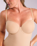 Introducing Bare Strapless Thong Bodysuit. Its adjustable convertible straps allow styling versatility, with free transparent straps included. The underwire and molded cups offer lift and sculpting, while the double-layer abdominal panel delivers targeted compression for a flawless silhouette.