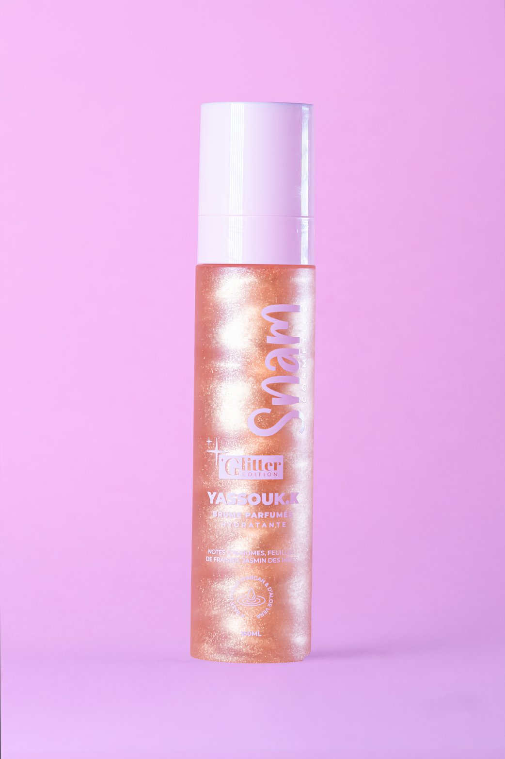 Illuminez votre peau avec cette brume pailletée hydratante et parfumée. Enrichie en huile d’argan et aloe vera, elle hydrate et nourrit tout en ajoutant un subtil éclat scintillant et un parfum rafraîchissant aux notes d’agrumes, de feuilles de fraisier, d’ambre et de jasmin des Indes.