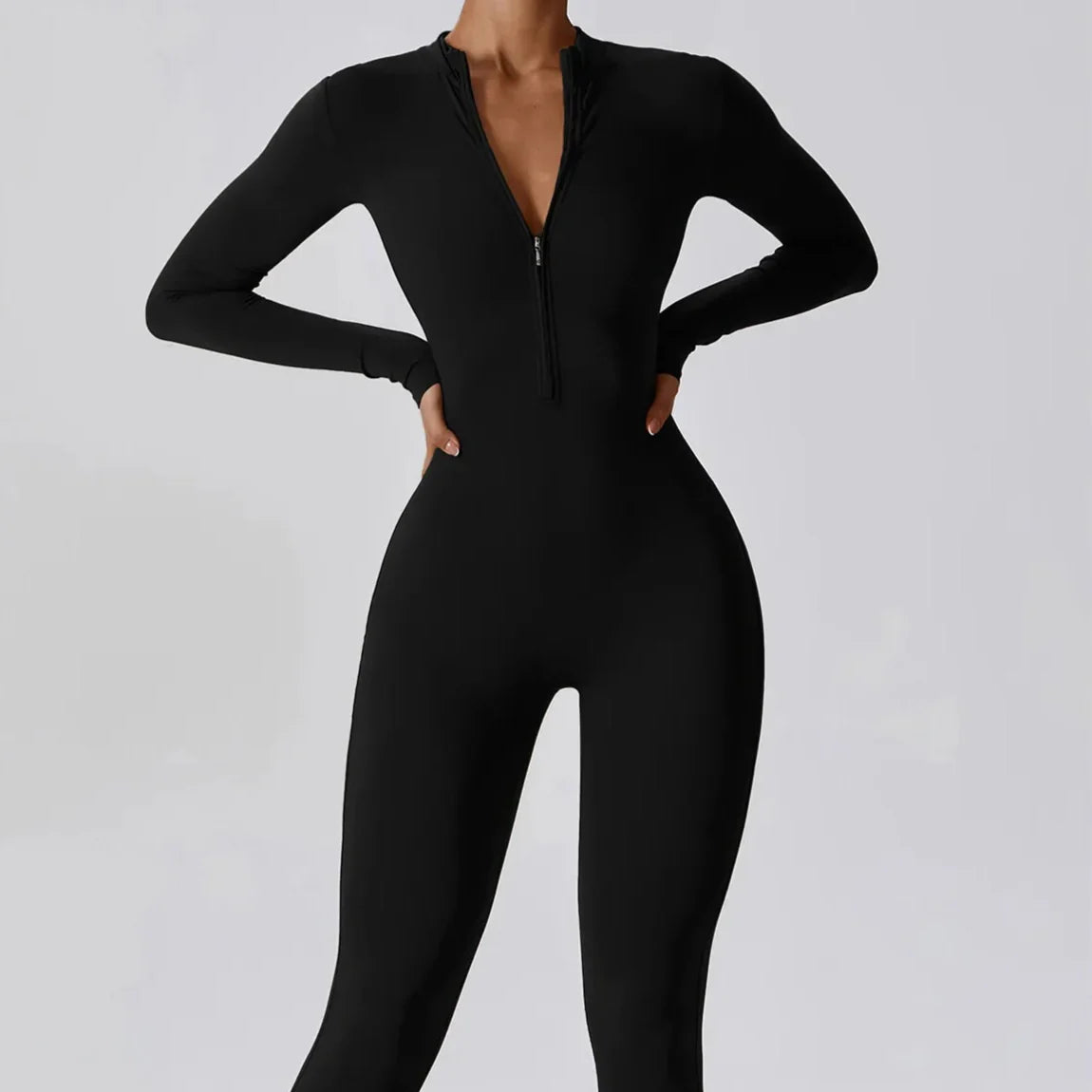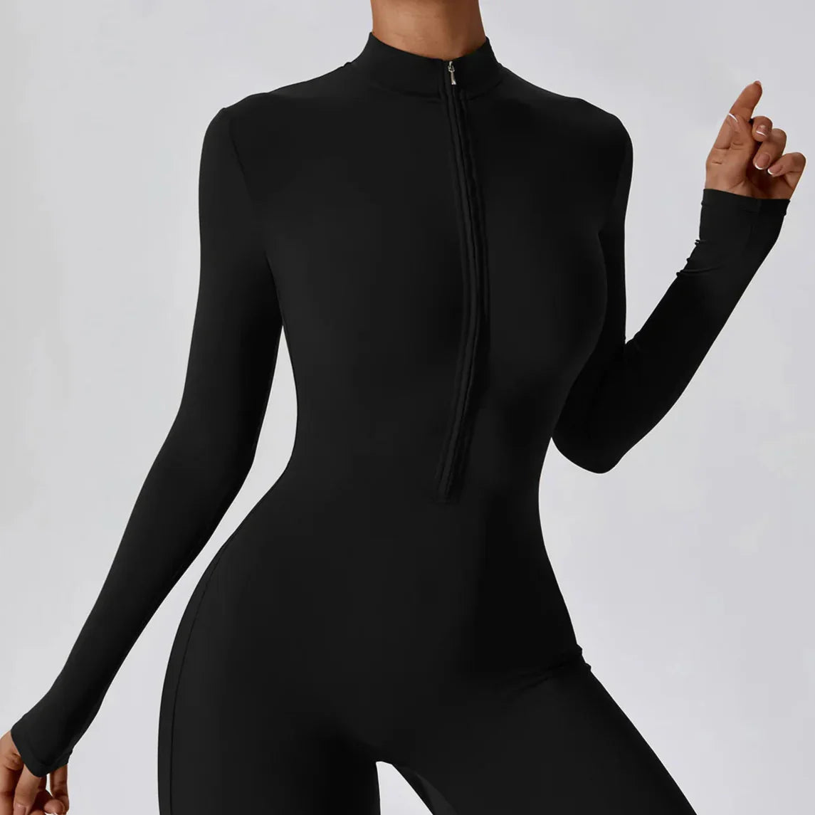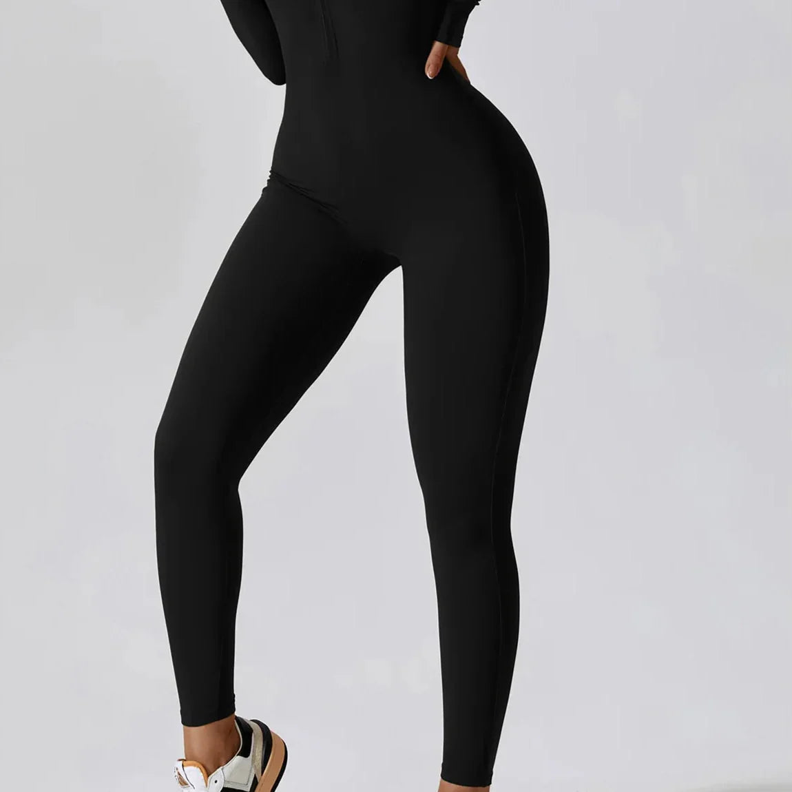 Cette combinaison ultra-ajustée met en valeur la silhouette avec une finition lisse et un col montant moderne. Dotée d’une fermeture éclair sur le devant, elle permet un ajustement modulable pour un style polyvalent, idéal du quotidien aux occasions spéciales.