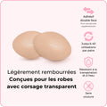 Ces coques légèrement rembourrées sont spécialement conçues pour apporter un léger rehaussement tout en offrant une sécurité contre les dysfonctionnements embarrassants de vos tenues. Idéales pour les robes de mariée avec un corsage transparent.