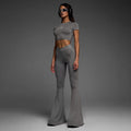 Take your style to new heights with this Pullover Top High Waist Flared Pants Two-Piece Suit! The fitted pullover top and high waist flared pants make a bold statement while flattering your figure. Perfect for the daring fashionista who loves to stand out in a crowd. Elevate your wardrobe with this chic and stylish suit!