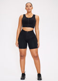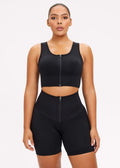 Sweat it out with OUR NEW Sauna Compression Workout Shorts. Designed with a thermal-tech fabric in the waist and tummy, these shorts are designed to stimulate sweating. Their high-waist design features hook & eye closures and a non slip zipper to provide the perfect contour and compression. The legs feature a breathable fabric that is moisture wicking.