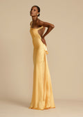 Elevate your presence with Zoey, a mesmerizing floor-length gown designed for modern elegance. Crafted in a luxurious rich yellow hue cut on the bias,